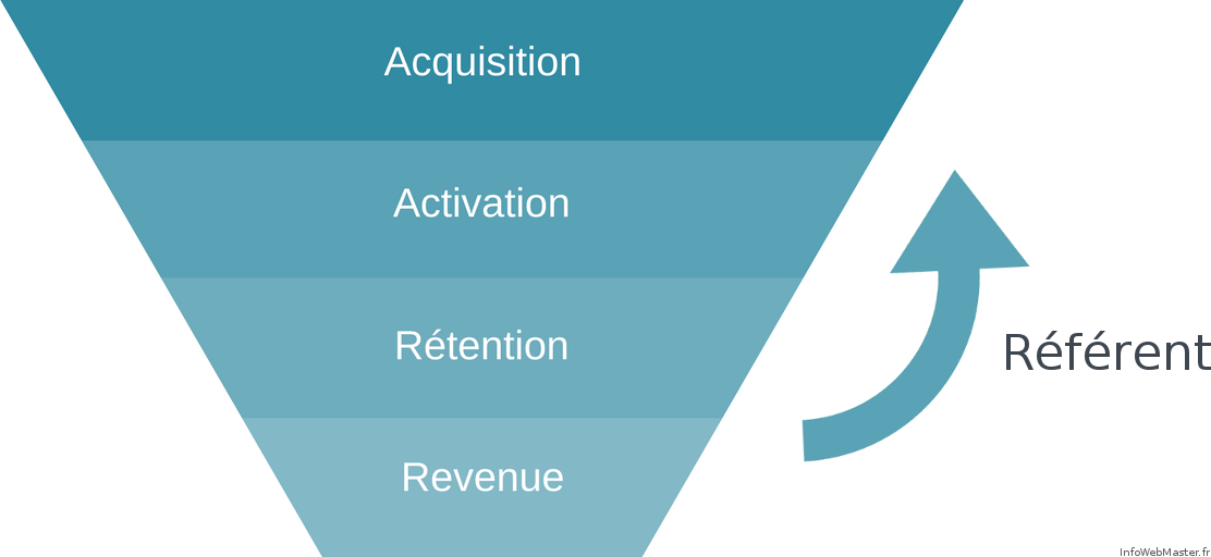 Le seul but du growth hacking est la croissance, et celle-ci ne se focalise pas uniquement sur lâacquisition de nouveau client. Pour cette raison, le framework âAARRRâ est utilisé et fait référence aux 5 catégories que le growth hacking tente dâaméliorer :
